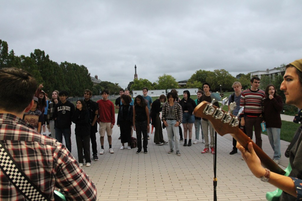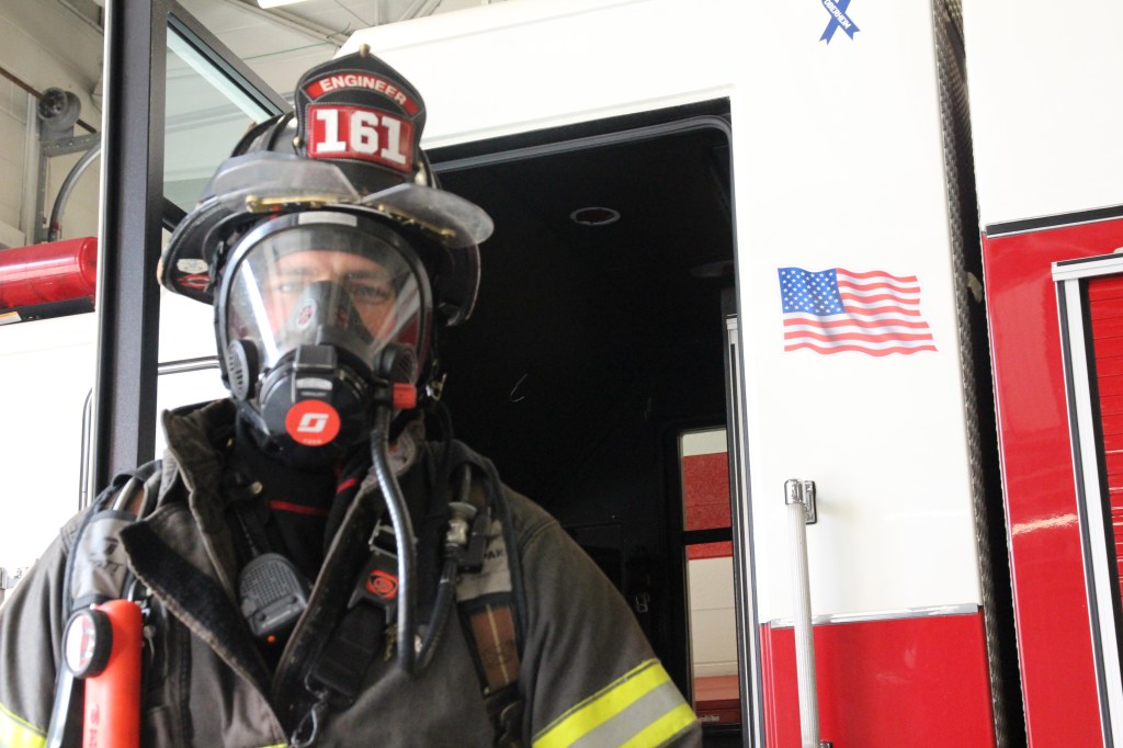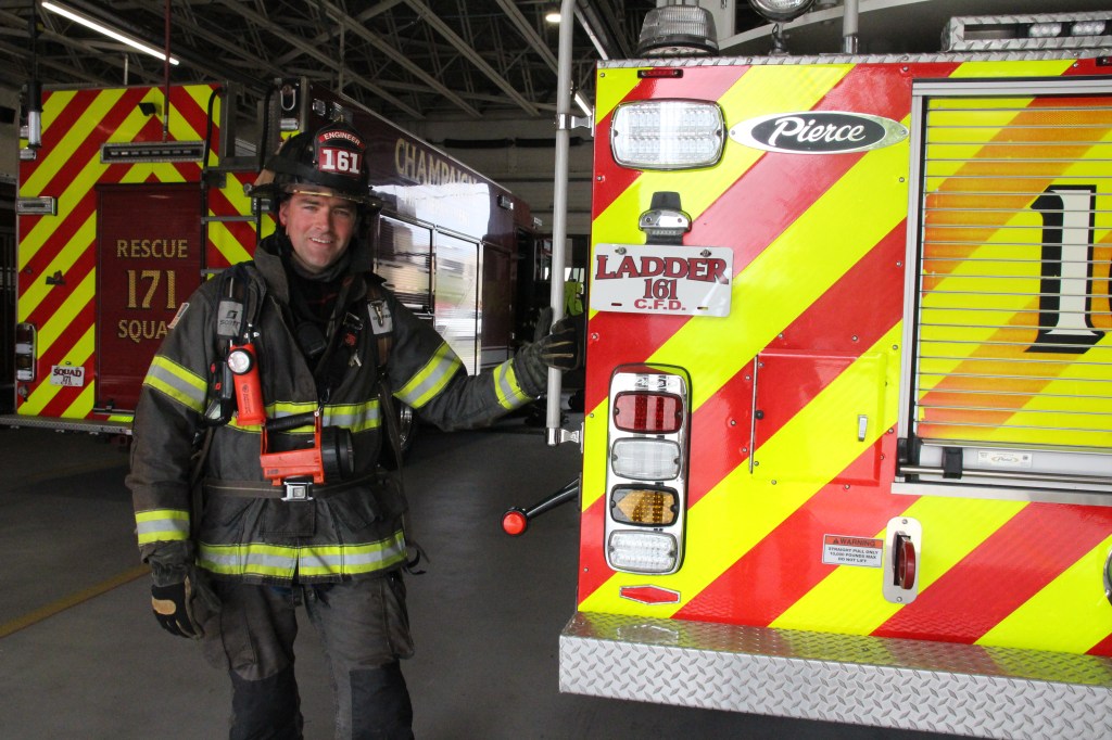Firefighter at the University of Illinois poses for photos after a short interview.